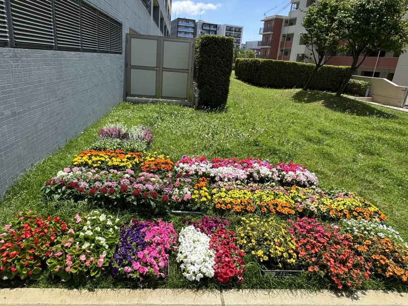 計大人9名の方にご参加いただき、プランターおよび花壇2箇所への花苗の植付を行いました。