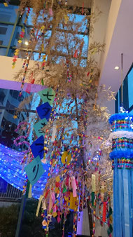 6月中旬から7月上旬の間に七夕の飾り付けをクレセントホールに行い、住民の皆様に願い事を書いていただける様に用意しています。