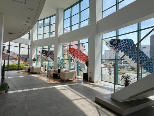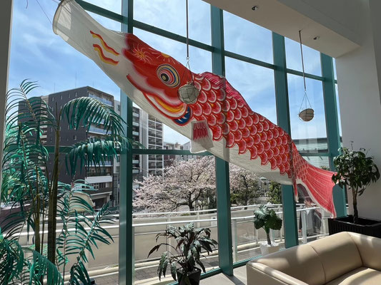 4月中旬から5月上旬の間に鯉のぼりをクレセントホールに飾り付けています。
