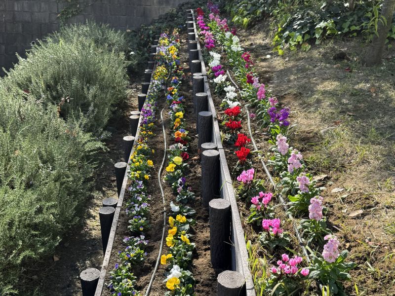 参加人数が少なく3時間ほどの重労働になりましたが、皆様のおかげで2025年の秋もプランターと花壇に綺麗な花を植えることができました。